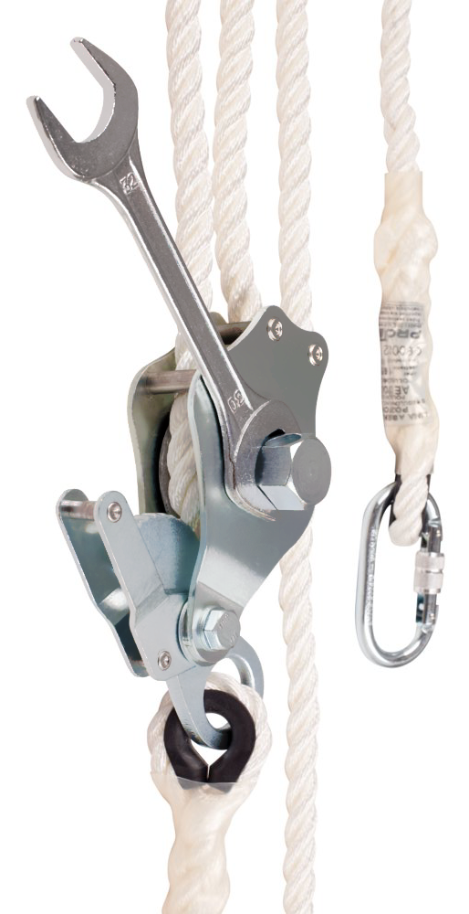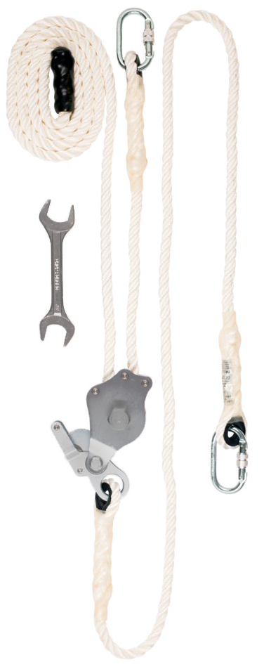 In order to connect horizontal anchor line AE 300 to safety harnesses, use an energy absorber with lanyard only. Rope tensioning wrench included.