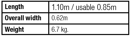 Length 1,10 m – Length Usable 0,85 m – Overall width 0,62 m