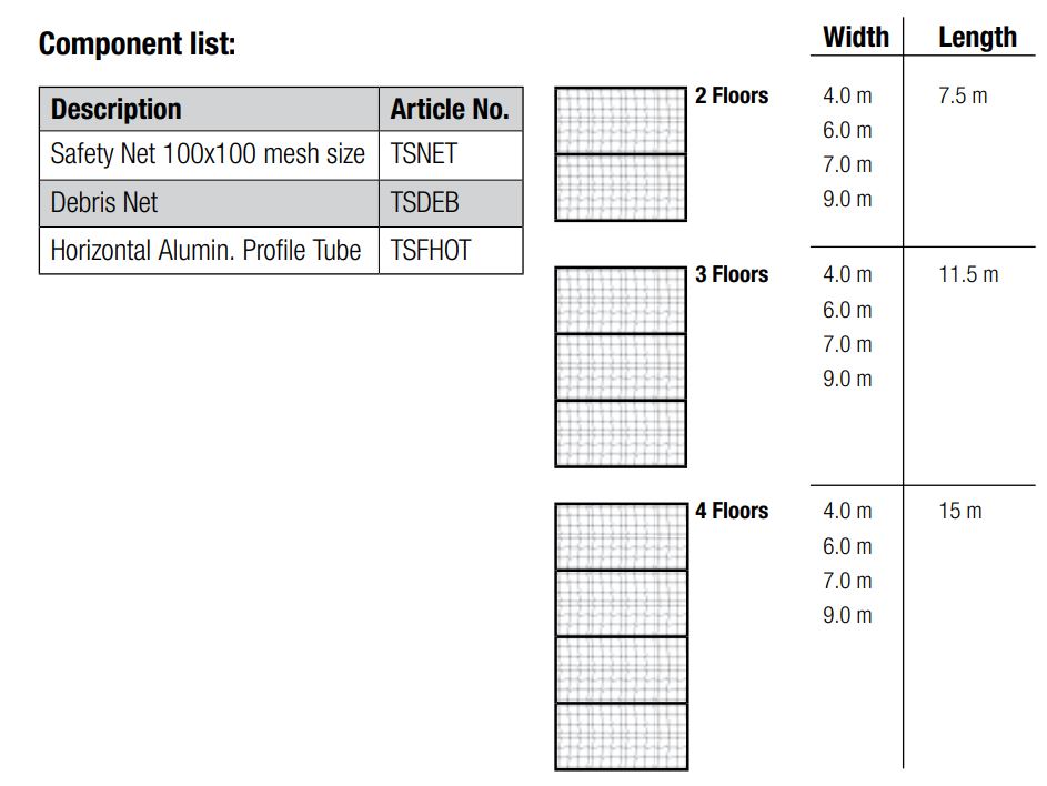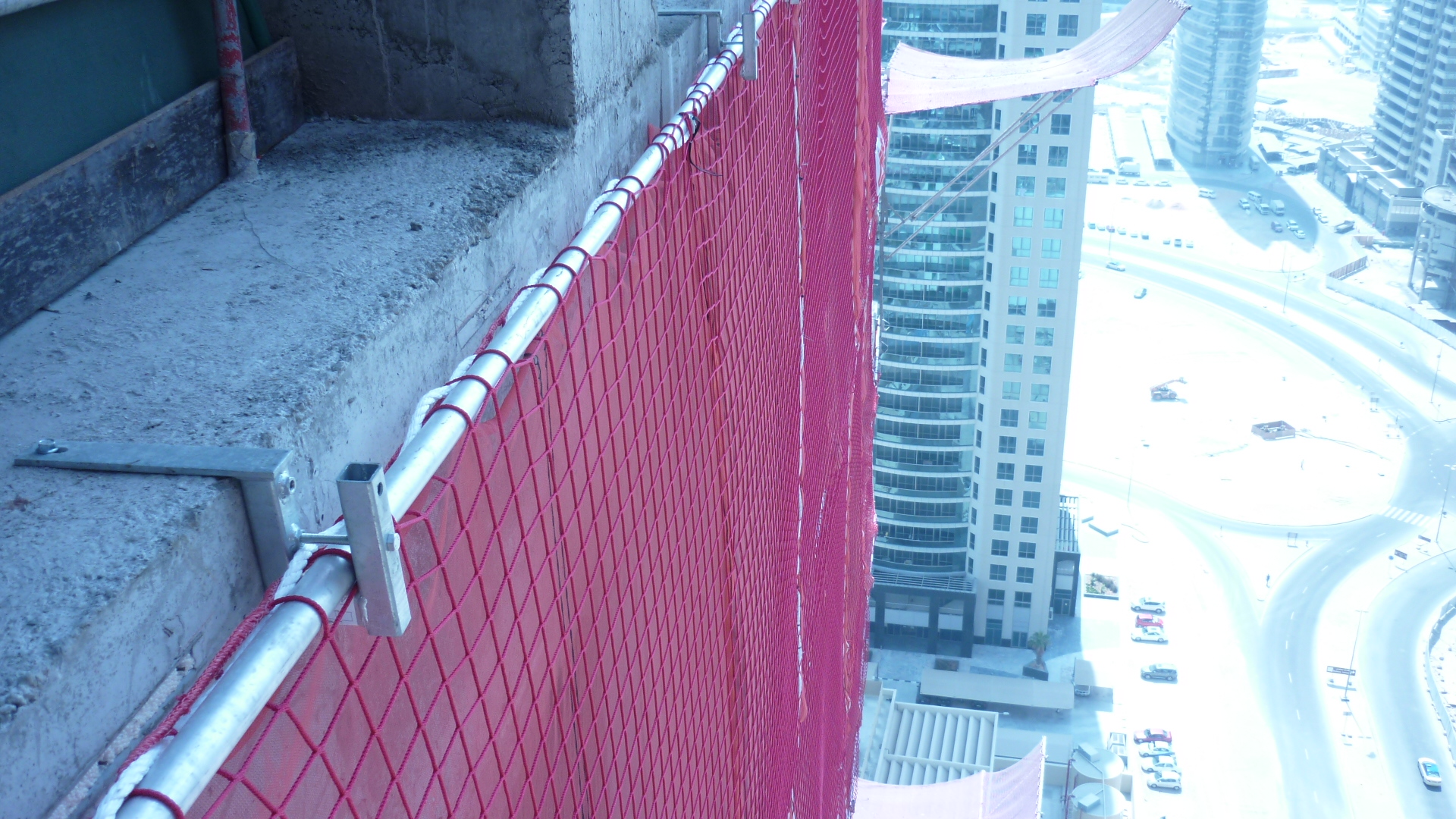 TSS (Total Safety Solutions) supplies and installs Vertical nets in line with the requirements of EN 13374, the European standard for Temporary Edge Protection. Nets are manufactured to EN 1263-1 and the application of such nets used vertically is covered in the standard as System U.